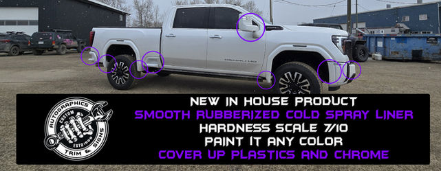 Whether you intend to get a box liner, spray your fender flares or just cover up something you don't like, you have options for any budget here at Autographics.